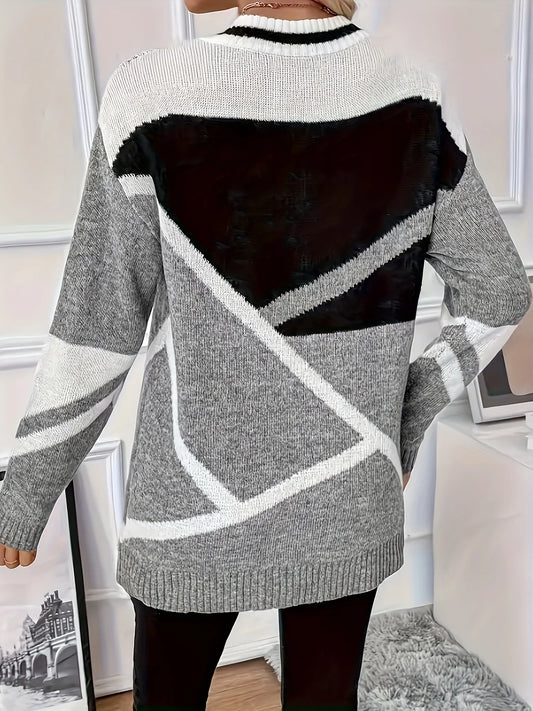 Maglione invernale da donna con collo patchwork