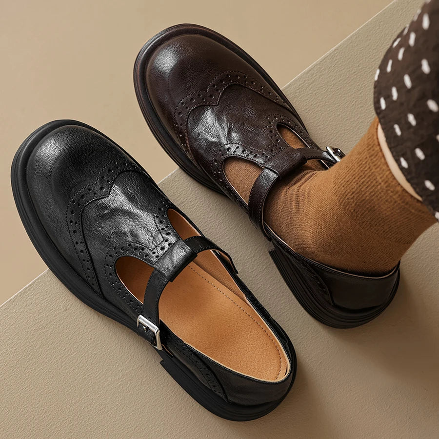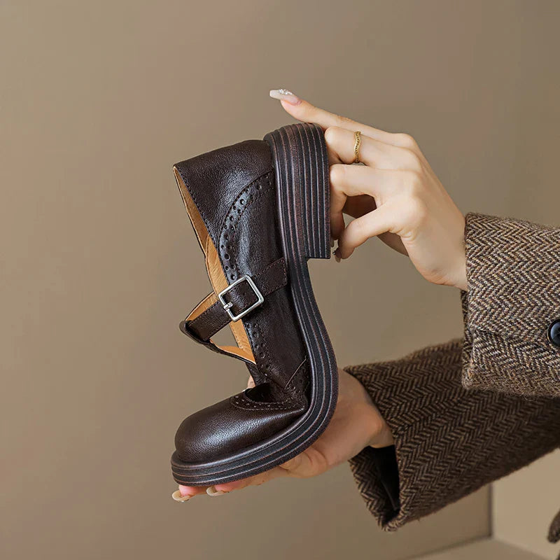 Vraťte se zpět v čase s moderním nádechem. Naše dámské kožené retro Mary Jane boty představují dokonalou kombinaci vintage šarmu a moderního pohodlí. Vyrobené z prémiové kůže, tyto boty jsou navrženy tak, aby vás udržely stylovou a sebevědomou po celý den. Ať už se oblékáte na speciální událost, nebo hledáte každodenní eleganci, tyto boty jsou všestranným a nadčasovým doplňkem vaší garderoby.